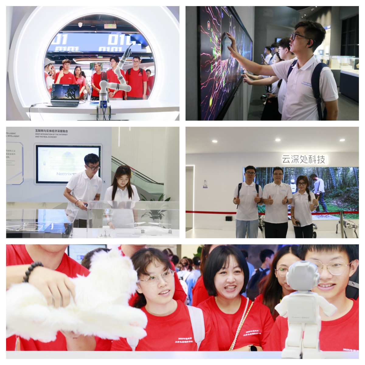 在杭州六小龙展厅、阿里巴巴集团、云深处科技有限公司、杭州城市大脑有限公司、杭州城市大脑指挥运营中心,实践队员围绕科技企业与教育融合、人才培养的具体举措展开深入考察,并聚焦科技成果赋能城市治理现代化开展专题学习调研。阿里巴巴将技术创新与时代需求深度融合,坚持以科技推动数字化的实体经济发展、以创新迈向绿色未来、以行动奔赴乡村振兴热土的责任与担当。云深处科技有限公司依托浙江大学顶尖科研团队,自主研发了机器狗核心关节模组、运动控制算法及全栈式解决方案,打造了主导研发、课程整合、产品落地的“全链条”实践模式。队员们在这里深刻体会到科技型骨干企业的引领支撑作用,也更清晰地认识到中国式现代化要靠科技现代化作支撑,实现高质量发展要靠科技创新培育新动能。