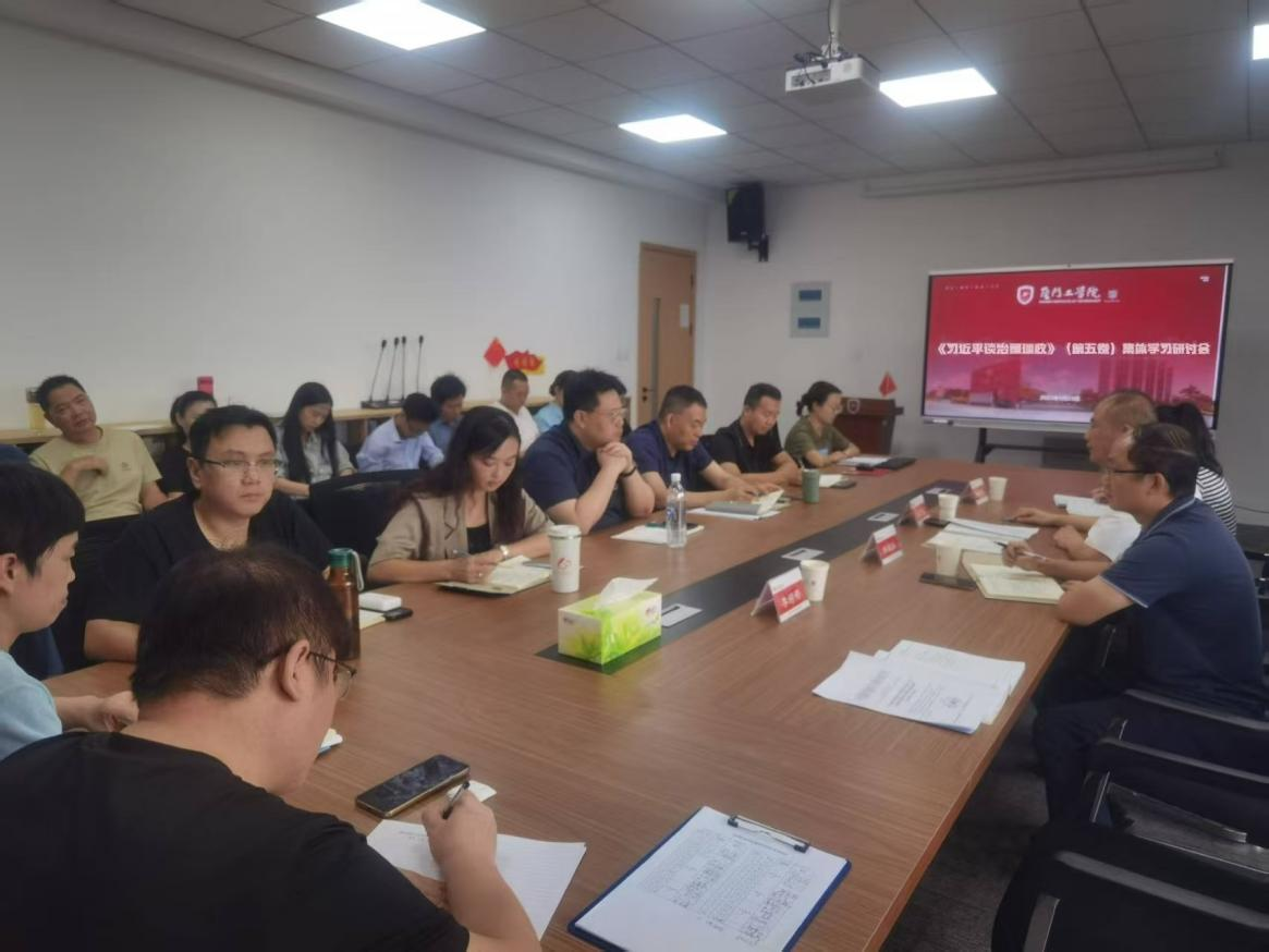 调研结束后,朱瑞元书记传达了《中央宣传部、中央组织部关于认真组织学习〈习近平谈治国理政〉第五卷的通知》的文件精神,参与了思政部全体教师关于《习近平谈治国理政》第五卷的集体学习研讨活动,并围绕如何将书中的重要思想融入思政课堂分享了自己的学习感悟。