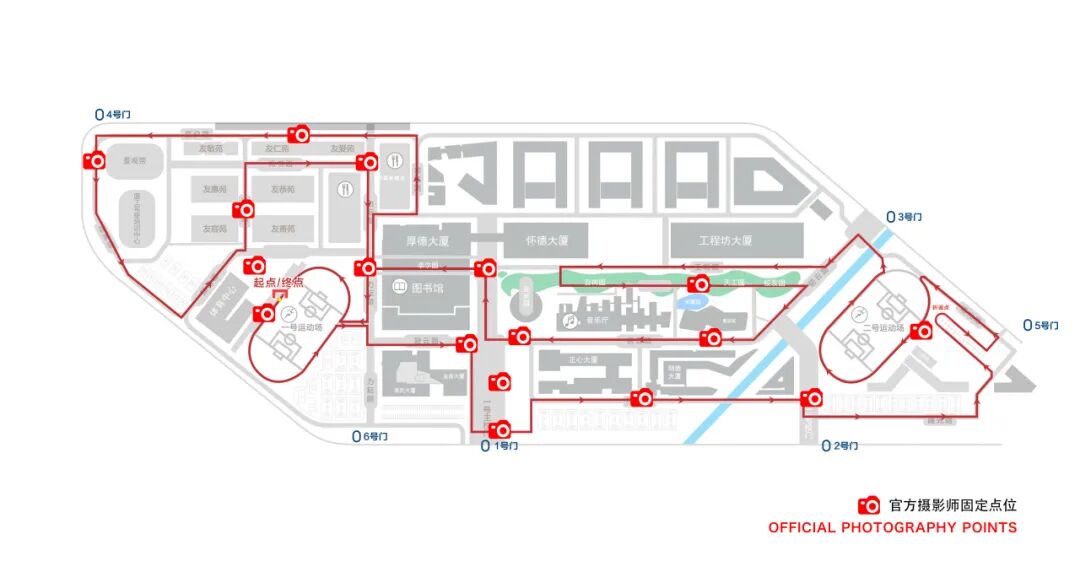 参赛选手请全程佩戴好自己的号码牌,确保在前身完整露出;可提前了解赛事固定点位拍照示意图,方便赛程中调整节奏、角度,收获满意的参赛纪念照;临近拍摄点位时,请确保安全距离,避免发生碰撞。