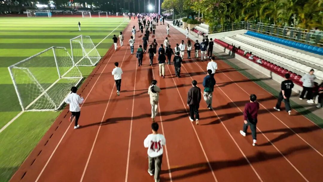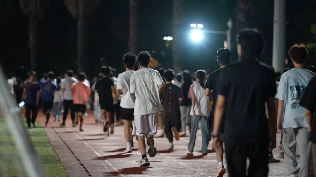 当荧光点亮校园的夜色,跑道便褪去静谧,缀满鲜活的微光;晚风也不再清冷,满载着同行者的默契,为这场简单的运动,染上浪漫而热烈的底色。