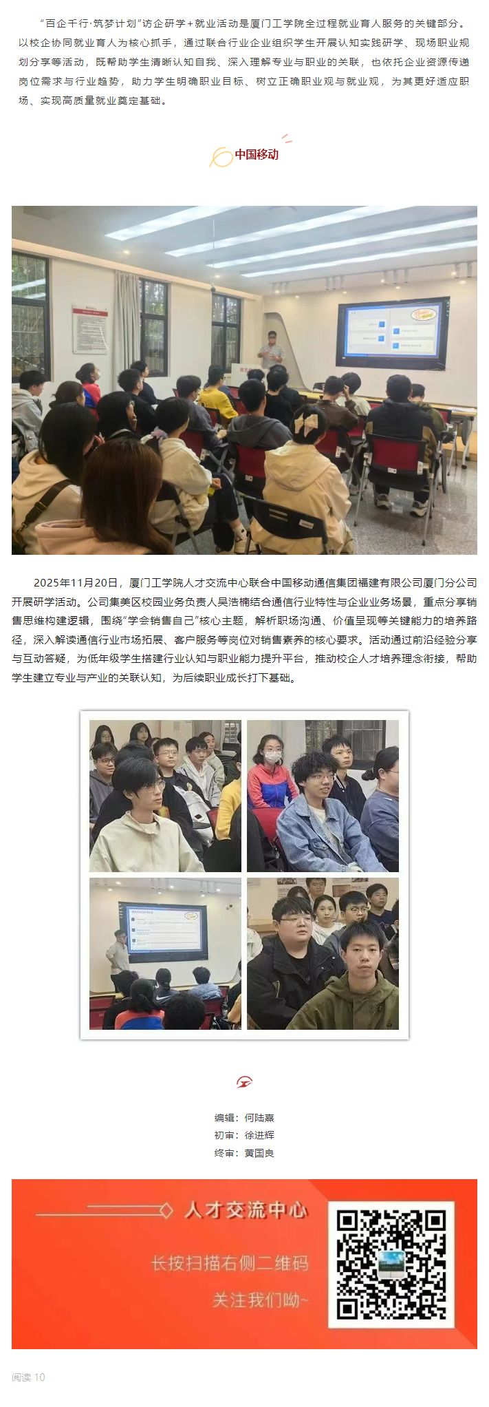 访企研学+就业丨“百企千行筑梦计划”×中国移动—解码新生代培养・赋能人才成长,活动圆满落幕(2025第67期 总第67期)