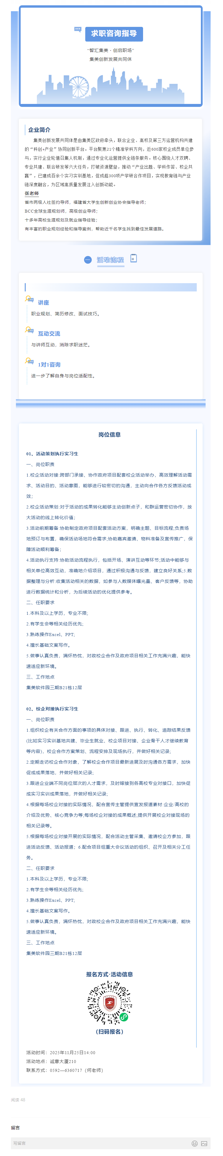 求职咨询+就业丨“智汇集美・创启职场”集美创新发展共同体求职赋能专场预告!