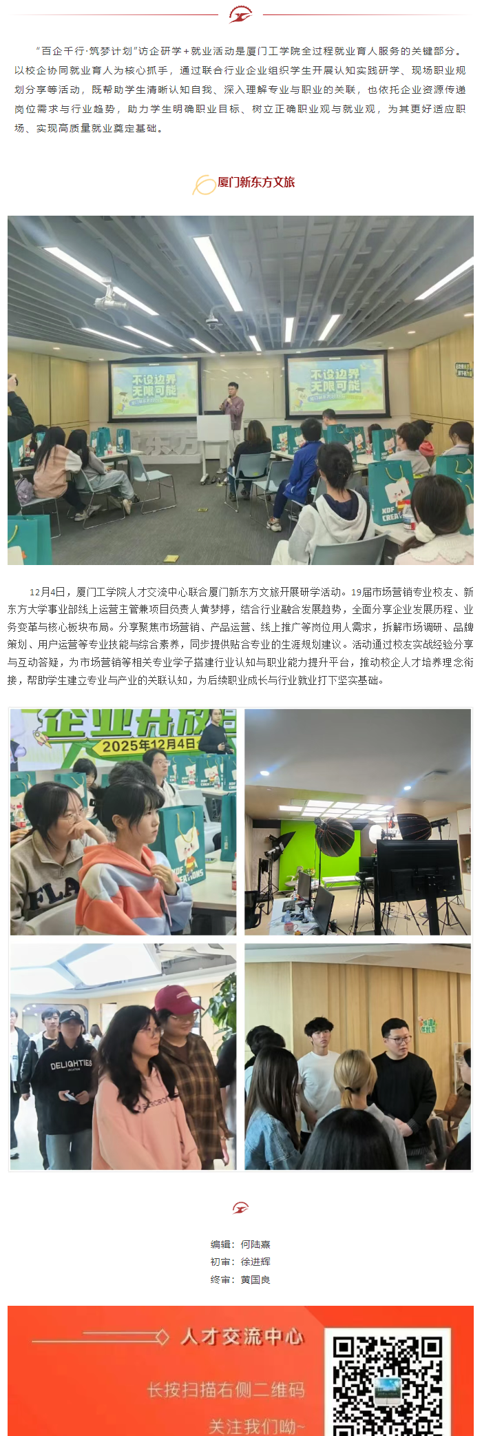 访企研学+就业丨“百企千行 筑梦计划”“直播赋能・智启未来”—厦门新东方文旅,活动圆满落幕(2025第75期 总第75期)