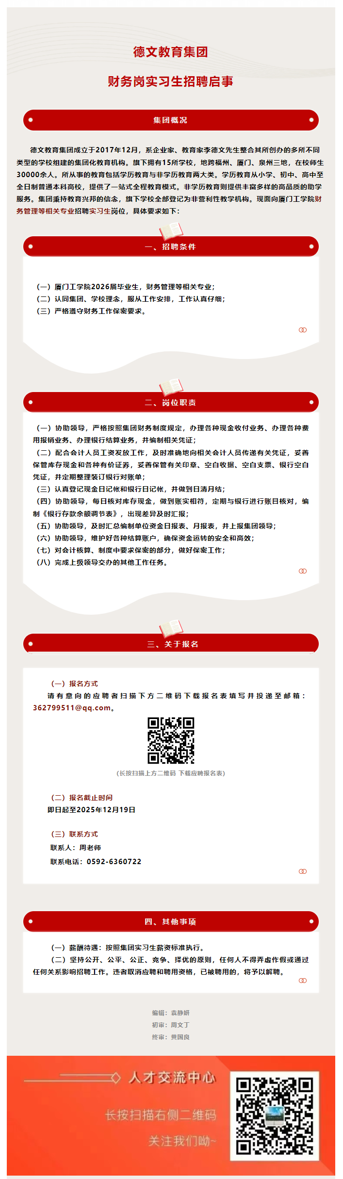 实习+就业 | 德文教育集团财务岗实习生招聘启事