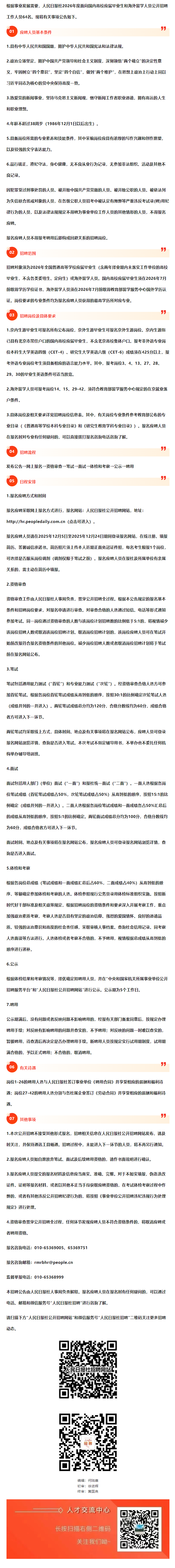 岗位推荐 | 人民日报社2026年度公开招聘工作人员公告