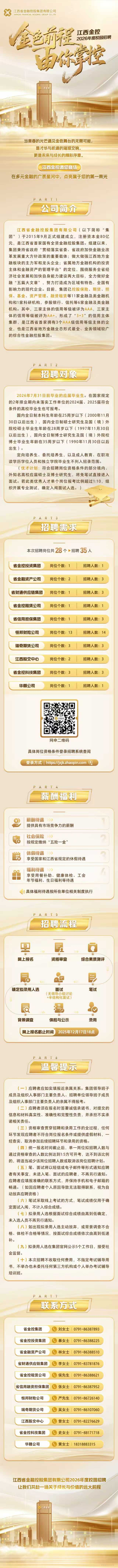 岗位推荐| 江西金控2026年度校园招聘