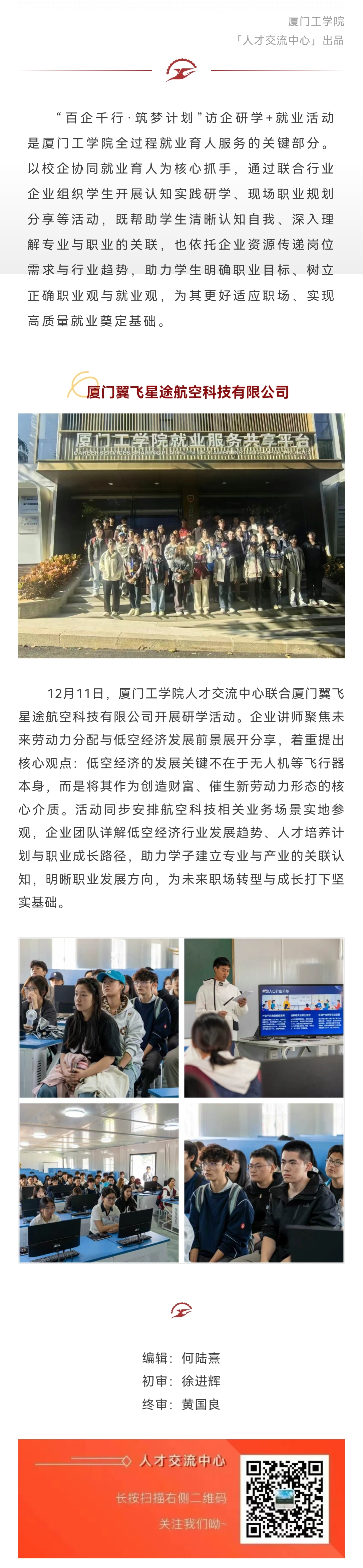 访企研学+就业丨“百企千行 筑梦计划”低空经济行业前瞻—厦门翼飞星途,圆满完成(2025第79期 总第79期)