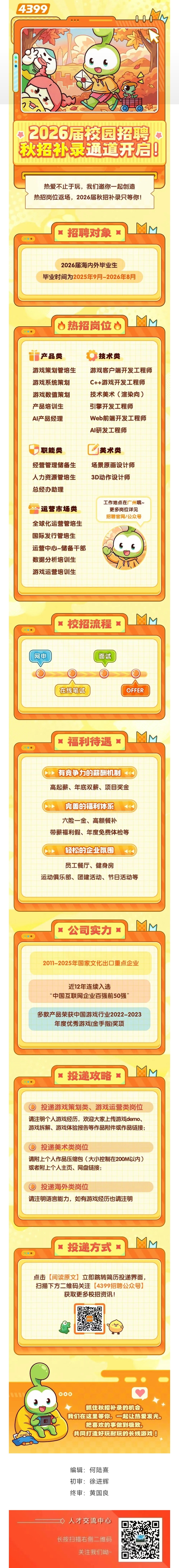 岗位推荐 | 4399 26届秋招补录通道已开启!