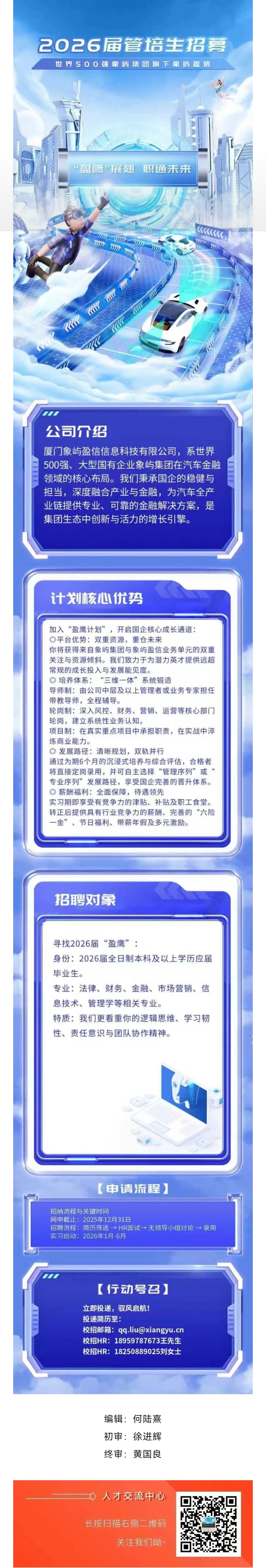 岗位推荐 | 厦门象屿盈信信息科技有限公司2026校园招聘