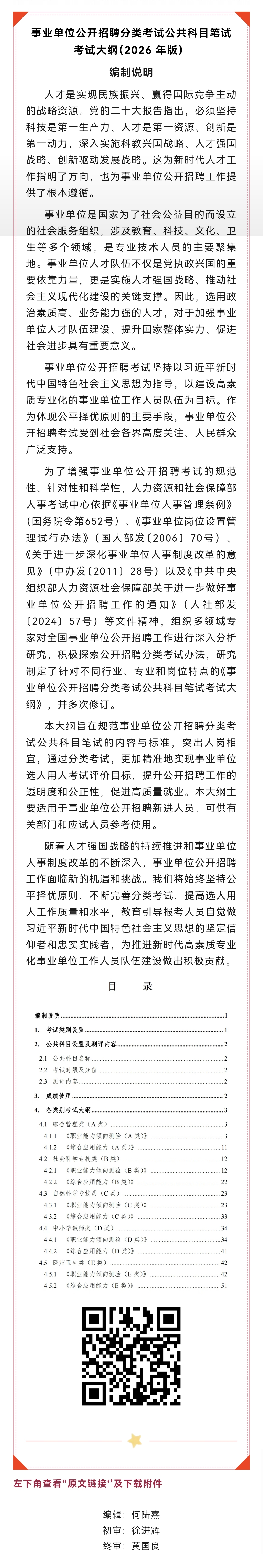 分享 | 2026年版事业单位公共科目笔试考试大纲