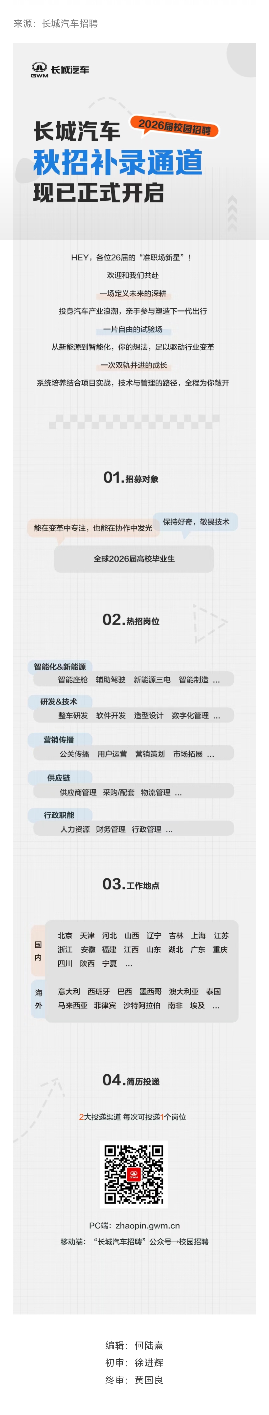岗位推荐 | 长城汽车秋招补录通道现已正式开启