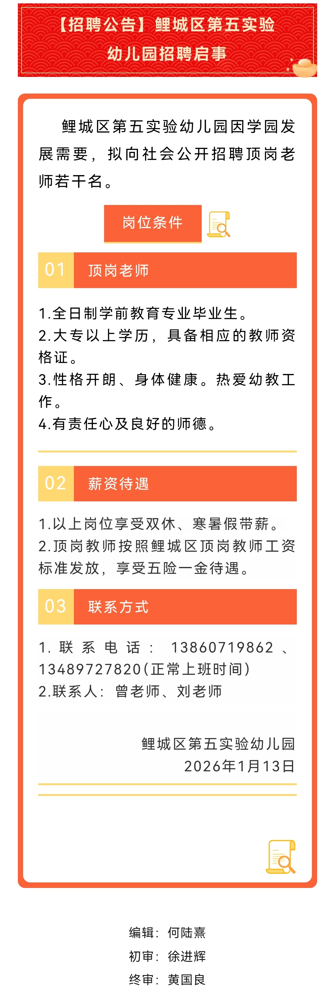 岗位推荐 | 鲤城区第五实验幼儿园招聘启事