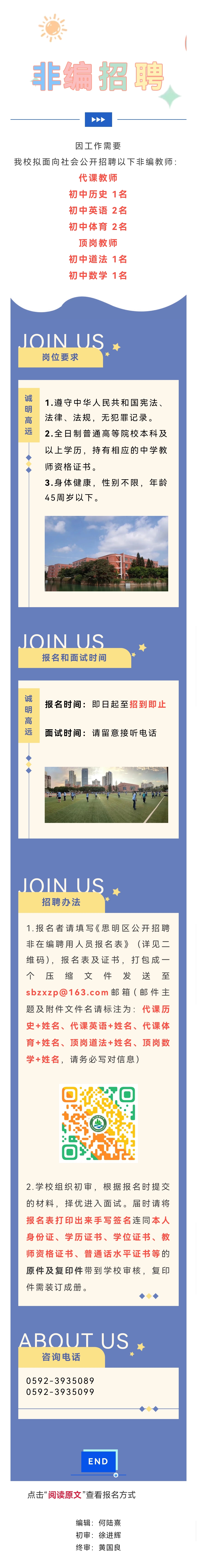 岗位推荐 | 厦门市松柏中学招聘非编教师