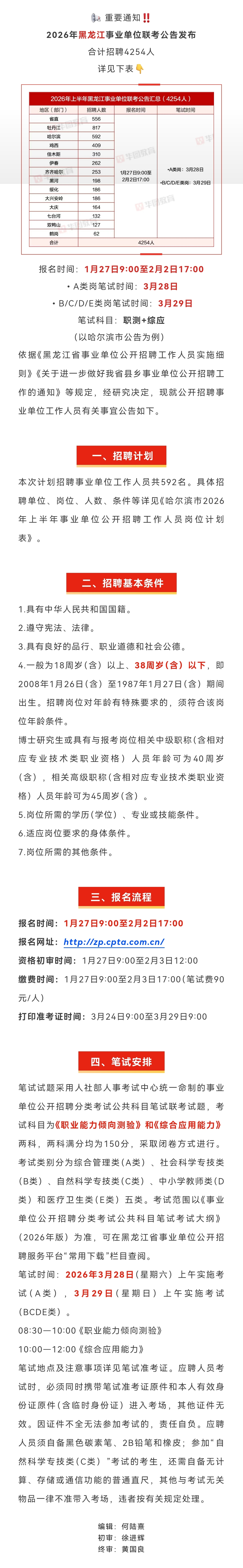 岗位推荐 | 3月28日笔试!2026年黑龙江事业单位联考新招4254人公告!