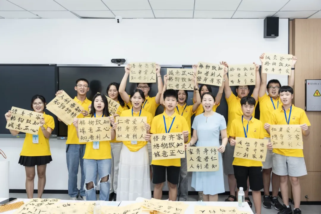 开营仪式前,营员们身着营服,在厦门工学院博雅教育与艺术传媒学院吴琼老师的引领下,走进儒家经典的世界。这是一堂围绕孔子及其儒家文化,以仁义思想为基础、以礼乐文化为纲目,以汉服射艺为体验,实现“德艺礼体”四维育人为目标的特色课程,为本期“中国寻根之旅”奠定深厚的文化底色。