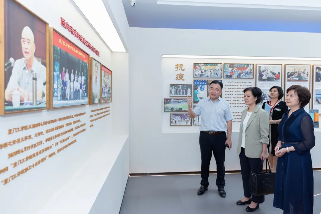 开营仪式结束后,福建省侨联、厦门市侨联等领导一行参观了厦门工学院校史展览馆、教育博物馆、马拉松博物馆、人工智能产业学院、教育信息文化馆等,李雄虎副董事长、执行校长等相关人员就我校教育文化建设、产教融合协同育人、教育信息化赋能教育教学等相关工作与领导嘉宾进行了详细介绍和交流。福建省侨联齐志副主席一行对学校先进的办学理念和在软硬件教学设施设备上的投入给予高度认可和赞誉。