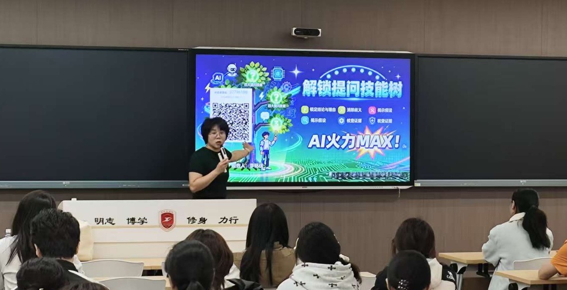 2025年11月11日,“融新讲堂”第二期,由李铭佳老师主讲的《解锁提问技能树,AI火力MAX!》讲座在明德226顺利开展。