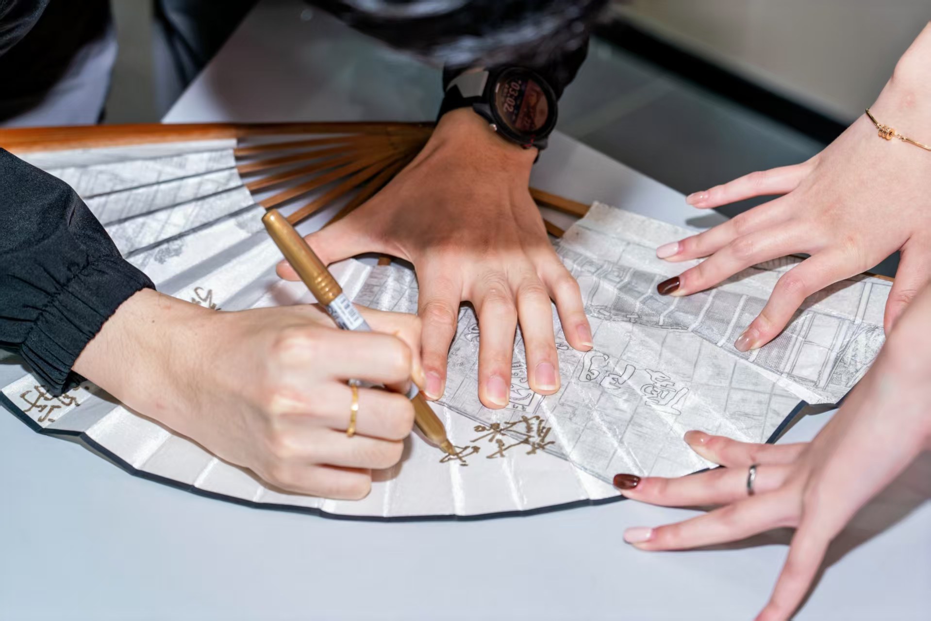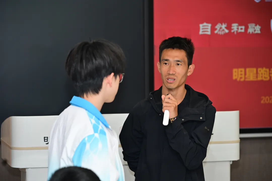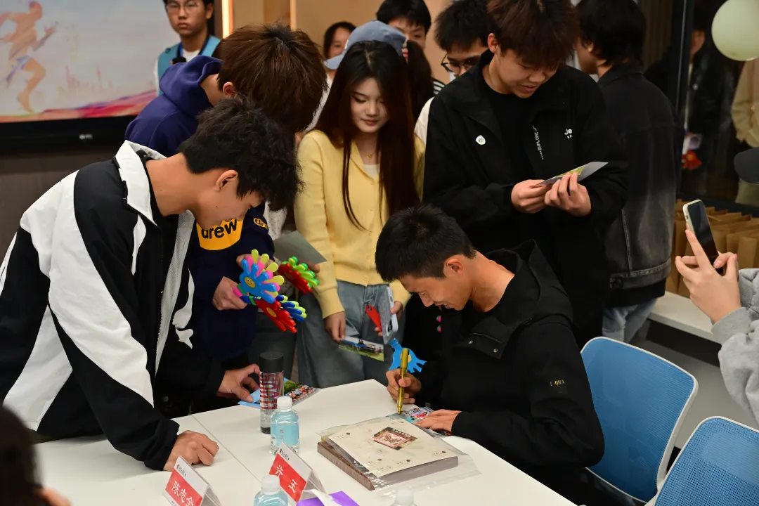 活动特别设置了抽奖环节与互赠仪式,明星跑者参与抽奖。最后的签名合影环节为活动画上圆满句号。整场活动通过艺术共创深化了情感联结,充分展现了体育与美育的完美结合。