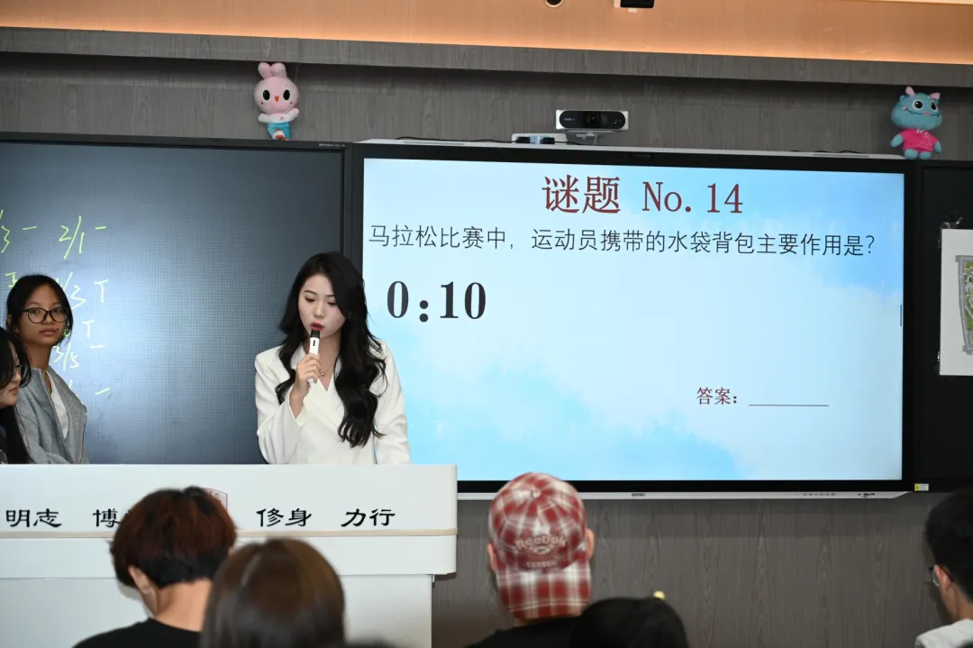 上海交通大学跑团见面会以专业分享与趣味互动相结合活动设置了跑步知识快问快答擂台赛和跑步BGM听歌识曲游戏,现场气氛热烈。在最具特色的共创奥林匹克跑赛赛道示意图环节,跑团代表与同学们共同在校园地图上标注最美跑步路线、最具挑战性坡道等特色路径,并签名留念。活动通过知识竞赛与赛道共创的多维互动,普及跑步知识,激发师生运动热情,成功营造了共建共享的校园跑步文化氛围。