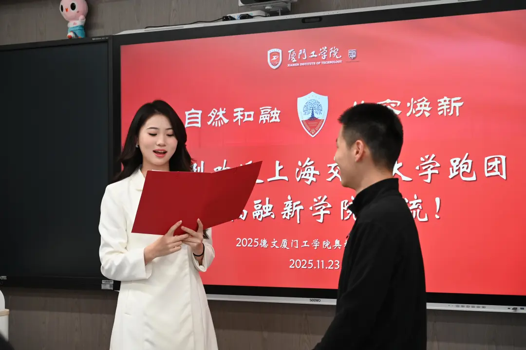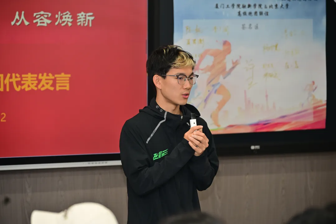 2025年11月22日下午,融新学院成功举办了三场别开生面的高校跑团交流见面会。北京大学、上海交通大学、澳门科技大学三校跑团分场地与学院师生展开互动,围绕“书写体育强国新篇章”这一主题分享经验、传递热情。活动特邀知名明星跑者许王、徐冰洁亲临各会场,分享其专业跑步经历与心得,将体育精神与跑团力量传递给每一位融新学子。接下来让我们一起走进本次活动的现场。