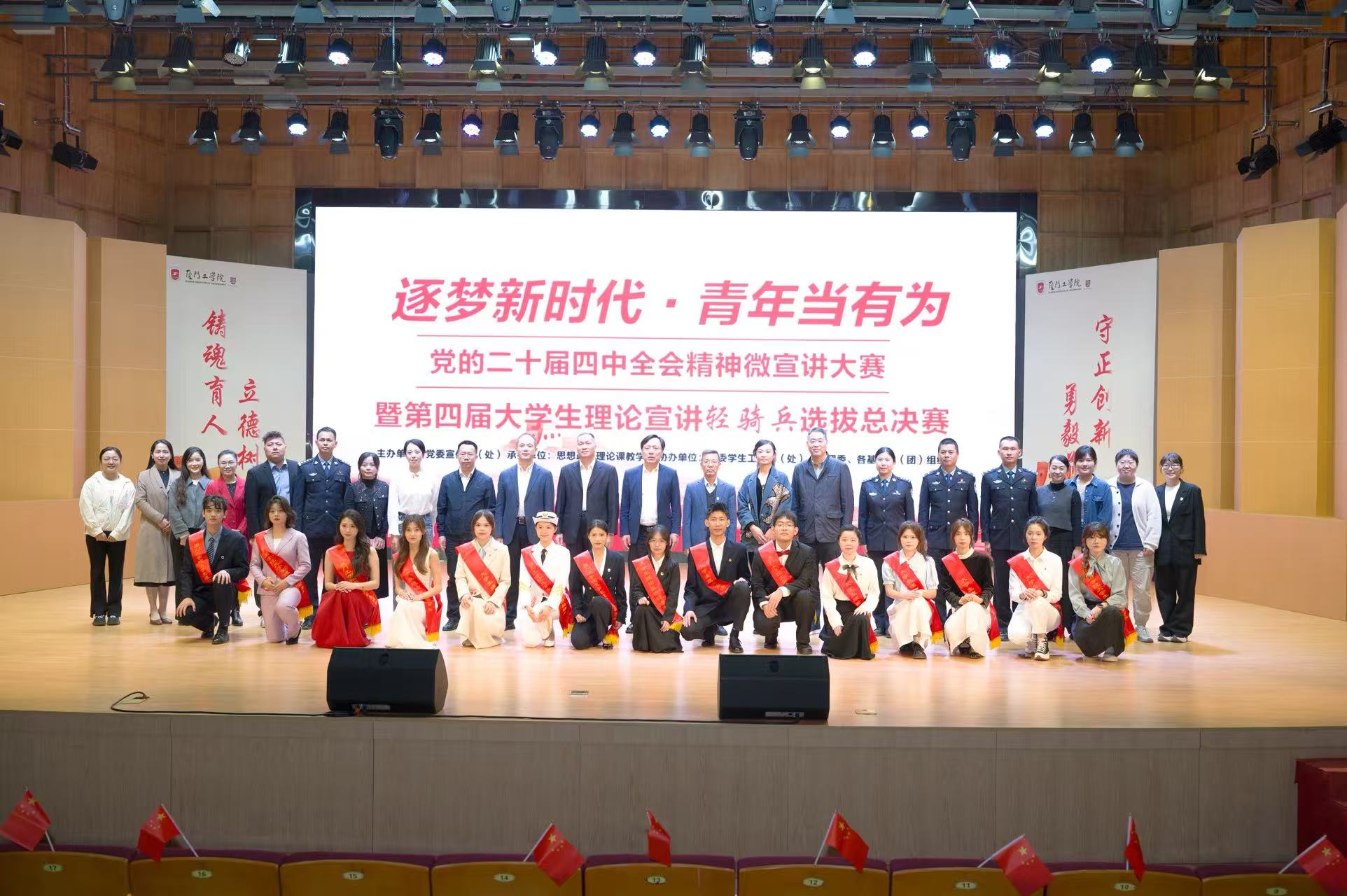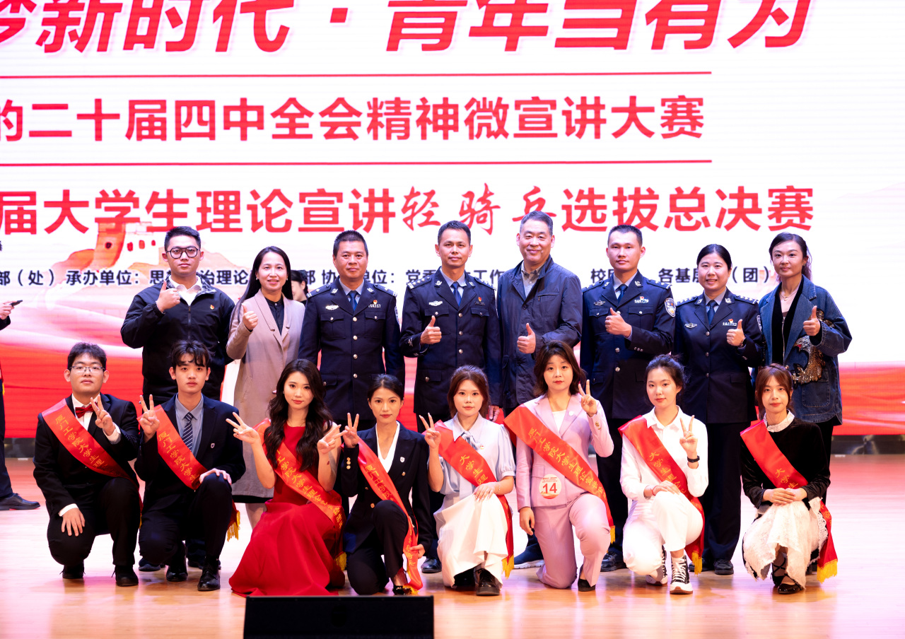 为深入学习宣传贯彻党的二十届四中全会精神,引导青年学子以青春视角践行理论传播,11月27日晚,由党委宣传部(处)主办、思想政治理论课教学部承办,党委学生工作部(处)、校团委及各基层党(团)组织协办的“党的二十届四中全会精神微宣讲大赛暨第四届大学生理论宣讲轻骑兵选拔总决赛”,在学校活动场地顺利举行。