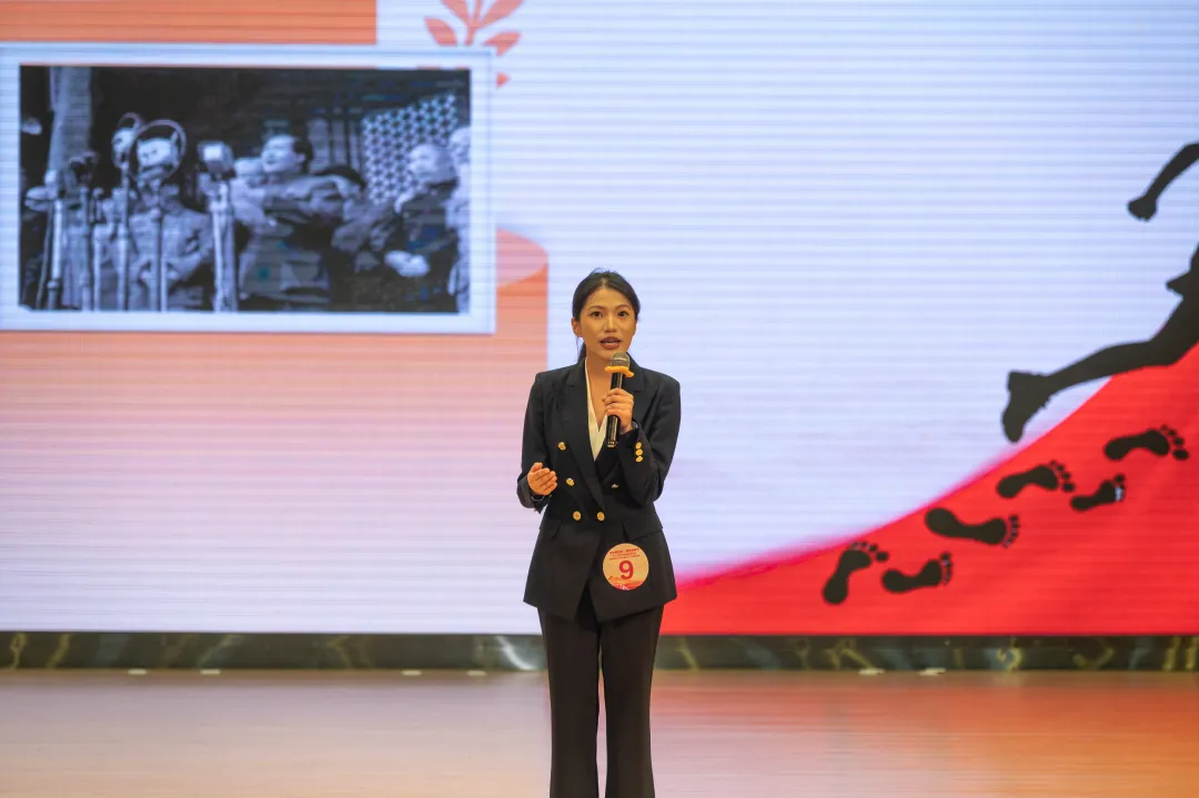 经初赛、复赛层层选拔,最终15位选手中,8名融新学子成功晋级总决赛,与其他选手一同以饱满的状态完成宣讲:他们将理论要点转化为贴近校园生活的鲜活故事,既有青年视角的巧思,又传递出新时代新生的责任意识,赢得现场观众的阵阵掌声。