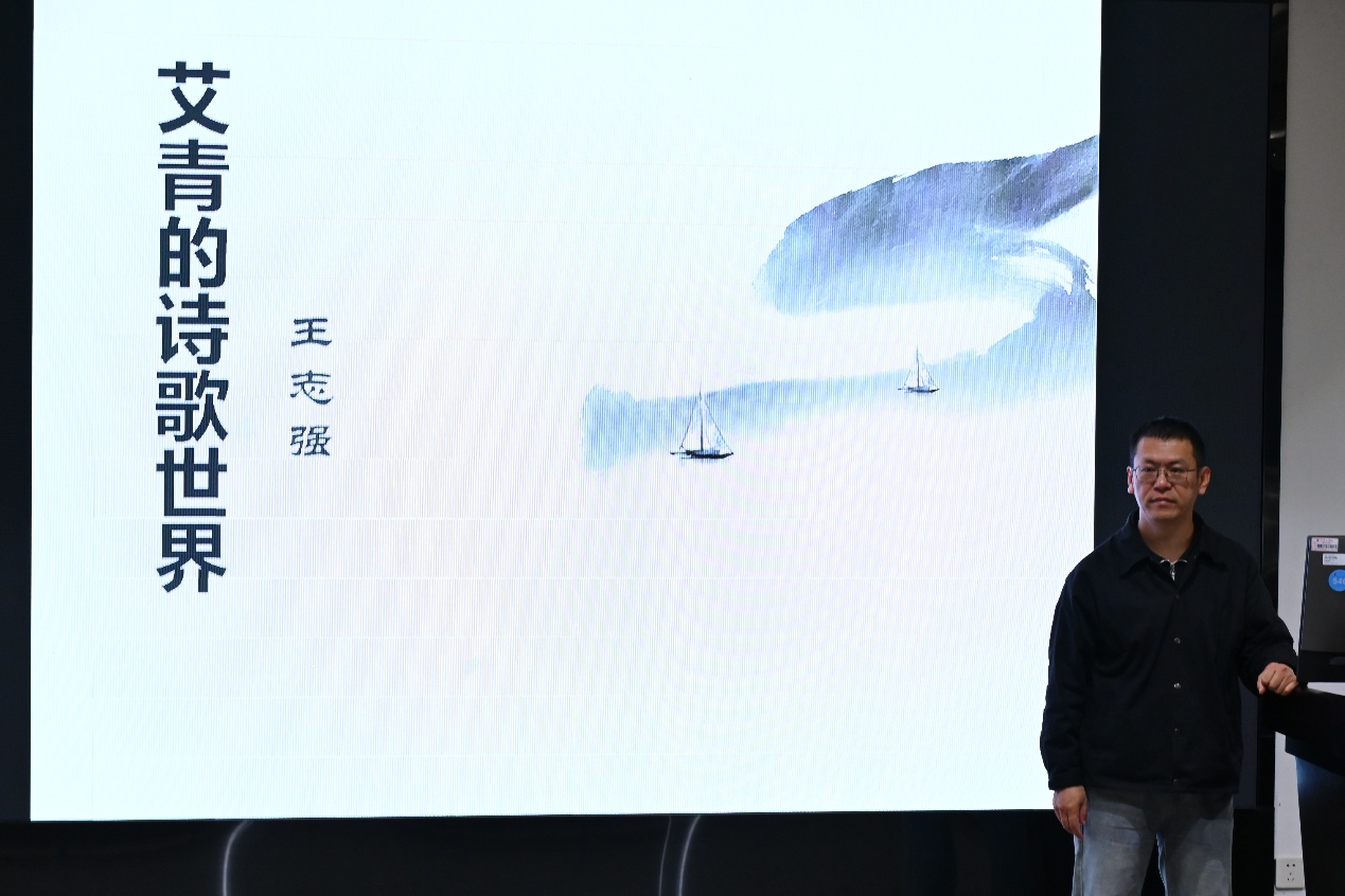 王志强老师在开场分享中提到:“艾青的诗是从泥土中长出的声音,每一行都包裹着时代的温度与民族的记忆。”他结合《大堰河——我的保姆》《我爱这土地》等经典作品,剖析了艾青诗歌中深沉的情感结构与历史印记以及他和他诗歌的成长。