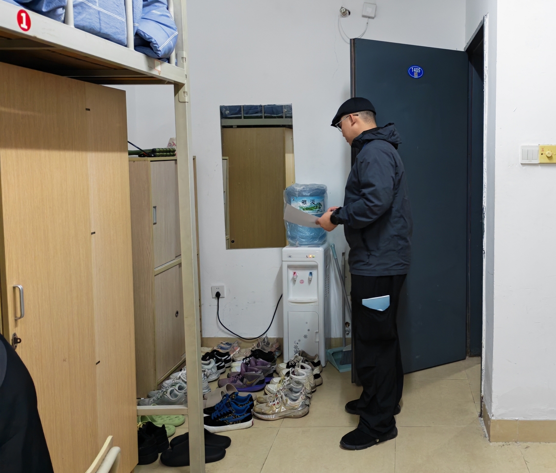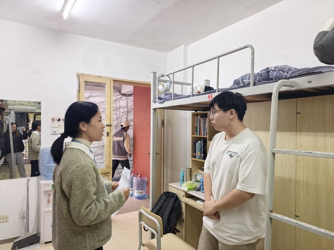 为进一步加强学生宿舍安全管理,切实保障全院同学的人身与财产安全,维护校园和谐稳定,融新学院于2026年1月6日下午开展了全院宿舍安全大检查。本次检查由学院行政副院长带队,14名辅导员与友新学委会组成检查小组,对学院全部学生宿舍进行了全面、细致的拉网式排查,努力为同学们营造一个安全、文明、舒适的学习与生活环境。