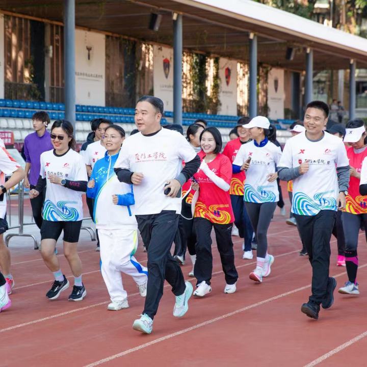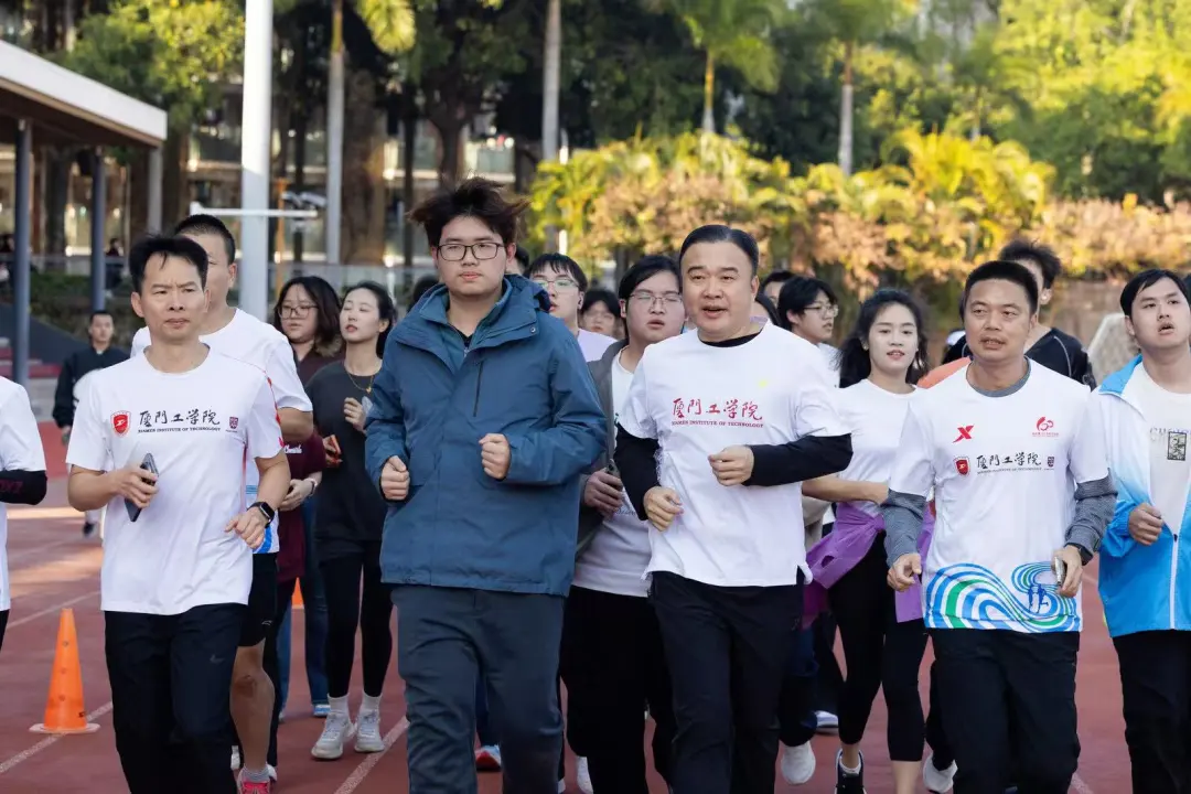 2026年1月7日,厦门工学院“轻体赋能 逐梦青春”环校5公里跑活动在冬日暖阳中活力开跑!融新学院黄蓓院长、王志强学术副院长、陈志全行政副院长、全体辅导员,携手融新轻体俱乐部学员等齐聚1号运动场,共同奔赴这场健康与激情交织的旅程。
