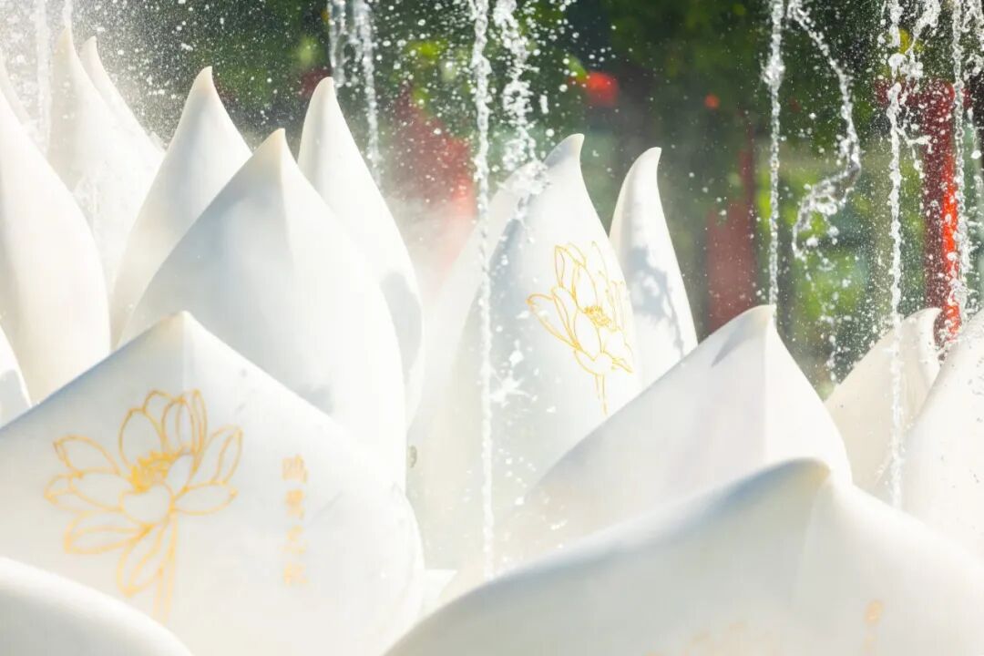 清泉自莲心涌出,依着乐声起伏回旋。时而潺潺如私语,时而激越似弦鸣,水与石莲相谐共舞,教人驻足神驰。待到暮色四合,灯光渐起,整座水景便化作一朵流光溢彩的莲灯,在水波间摇曳生姿,恍若洛神凌波,惊鸿照影。