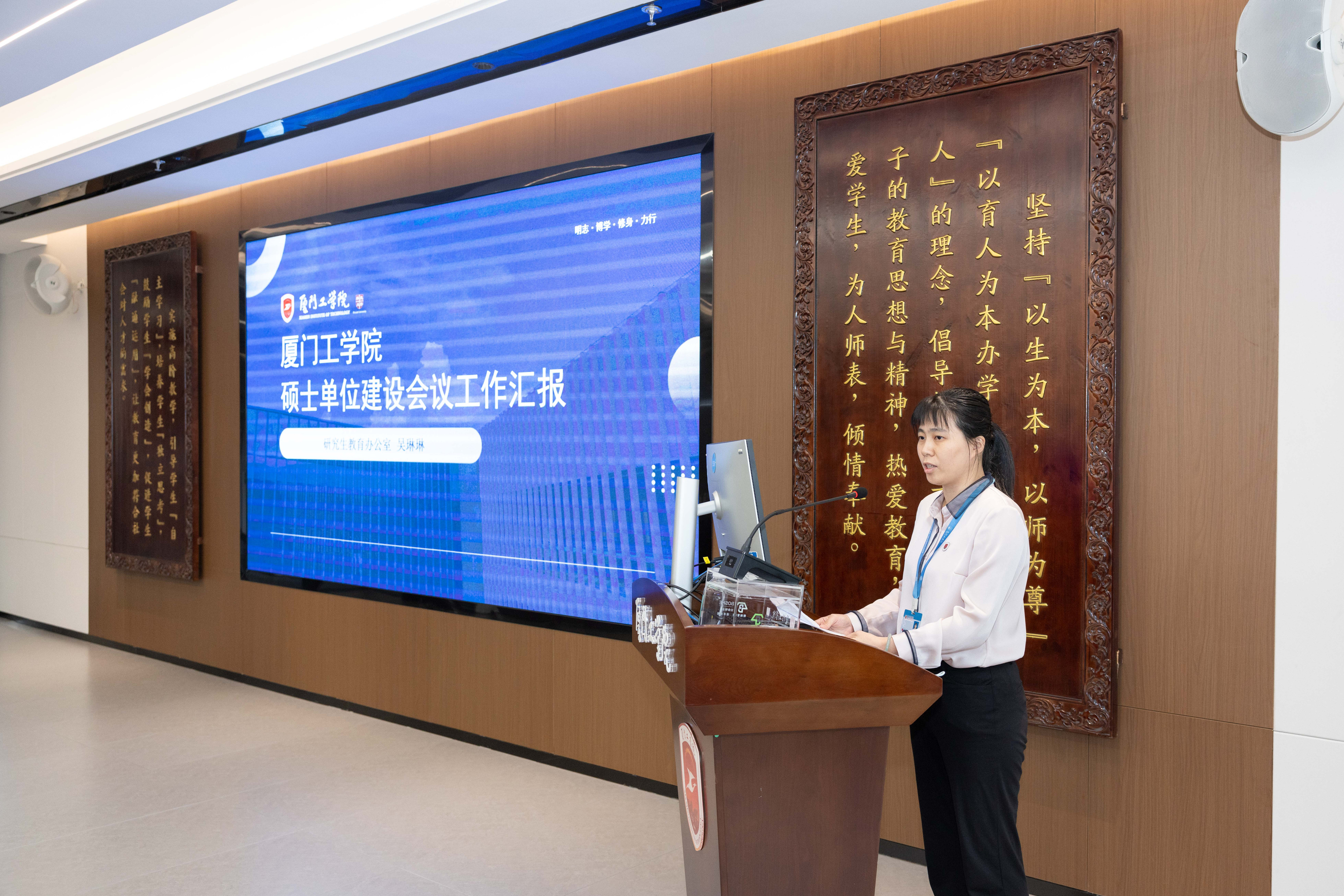 2025年10月24日下午,厦门工学院硕士单位建设会议在广新堂召开。中国工程院院士、西安交通大学蒋庄德教授参加厦门工学院硕士单位建设会议,具体指导学校硕士单位建设工作。
