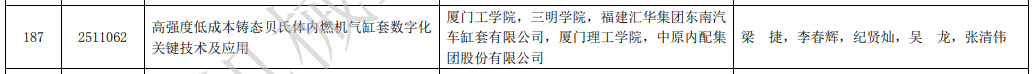 该项目由我校联合三明学院,福建汇华集团东南汽车缸套有限公司,厦门理工学院,中原内配集团股份有限公司共同完成。该奖项标志着我校省部级科技奖实现从0到1的历史性跨越,代表着我校在成形加工、柔性智造领域的科研水平有了重要突破,体现了我院在机械学科建设的新成果。