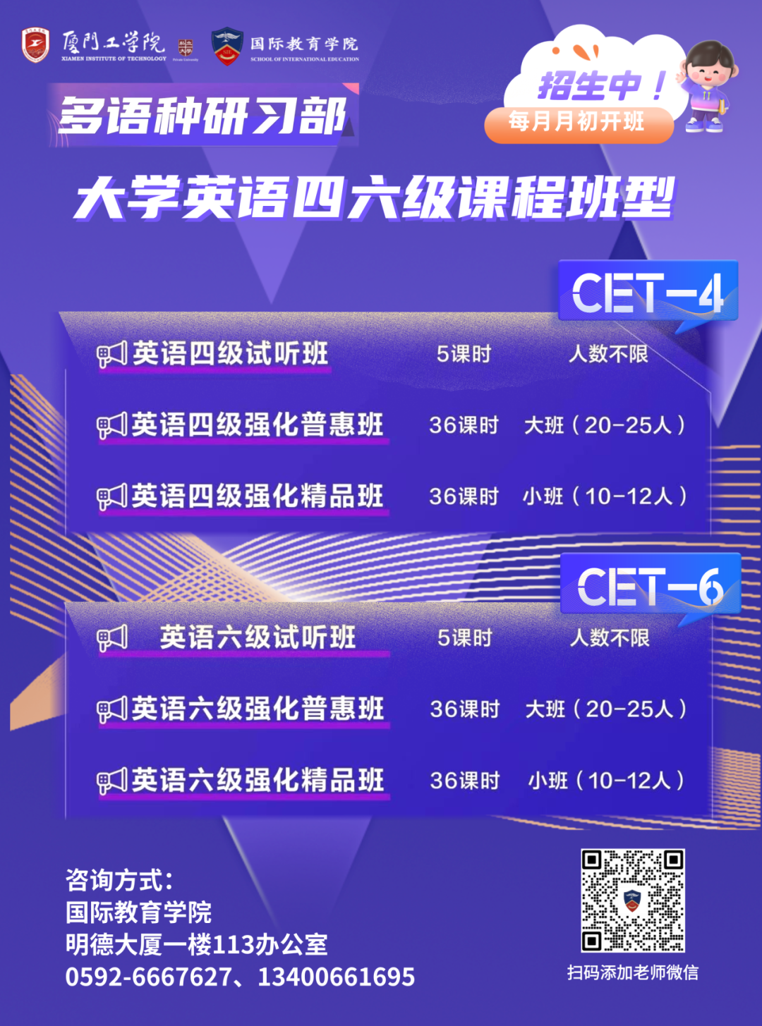 咨询地址丨厦门工学院国际教育学院明德大厦113室