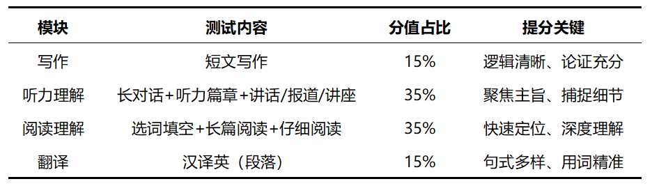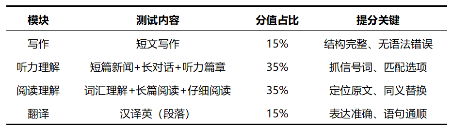四级笔试(CET4)核心分值分布