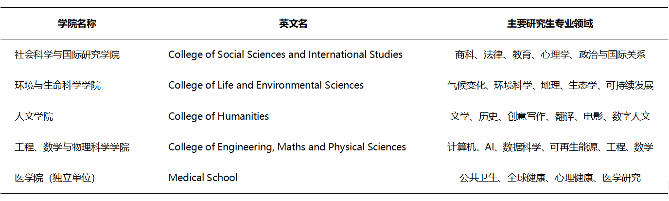 埃克塞特大学(University of Exeter)的研究生教育体系结构清晰,以四大学院制(Colleges)为核心组织架构,下设多个专业学院和学系(Schools and Departments),涵盖授课型硕士(Taught Master’s)、研究型硕士(MRes, MPhil)以及博士(PhD, MD, EdD)等各类研究生项目。