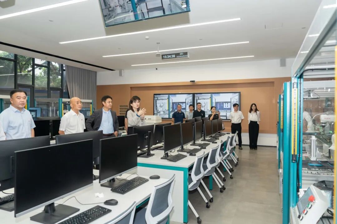 与会嘉宾参观了工业智造产业学院的教学场地、实训设备及实验室,工作人员详细介绍了各区域功能布局、教学安排及校企合作实训项目,展示产业学院为培养学生实践能力搭建的优质硬件平台。