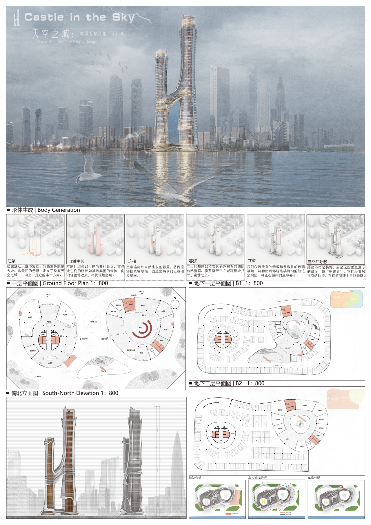 “天空之城”选址坐落于深圳后海金融总部基地的核心地带,与华润大厦为邻,共享深圳湾世界级城市客厅的景观与资源。不仅深嵌于片区“总部经济+科创高地”蓝图之中,更成为“小街密路、一张蓝图”规划理念的三维范本,建筑通过多层次的公共连廊,主动衔接滨海绿廊、地铁网络与周边商业,将孤立的塔楼转化为城市慢行系统的活力节点,呼应深圳“山海连城”的自然格局,使建筑本身成为湾区天际线上一座可生长、可呼吸的生命地标。