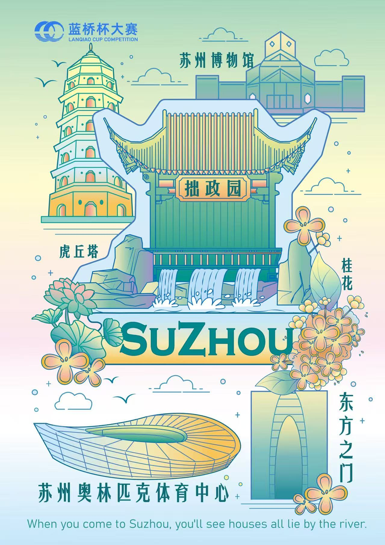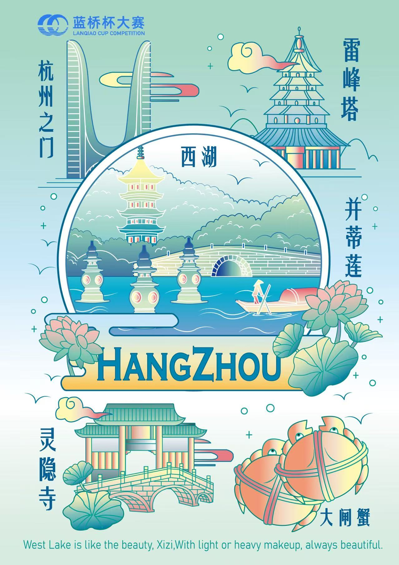 蓝桥杯大赛,以“美”为命题,运用了Adobe Illustrator软件创作了“江南之美”系列海报,旨在通过插画海报的形式展现江浙沪三地独特之美。《苏州之美》以拙政园为主体,细腻描绘亭台楼阁与蜿蜒水道,勾勒出江南园林的典雅古朴。《上海之美》聚焦外滩,林立的摩天大楼与黄浦江相互映衬,色彩明快,突出这座城市的繁华与现代气息。《杭州之美》围绕西湖展开,断桥、雷峰塔在湖光山色中若隐若现,运用清新色调,传递杭州的灵秀之美。
