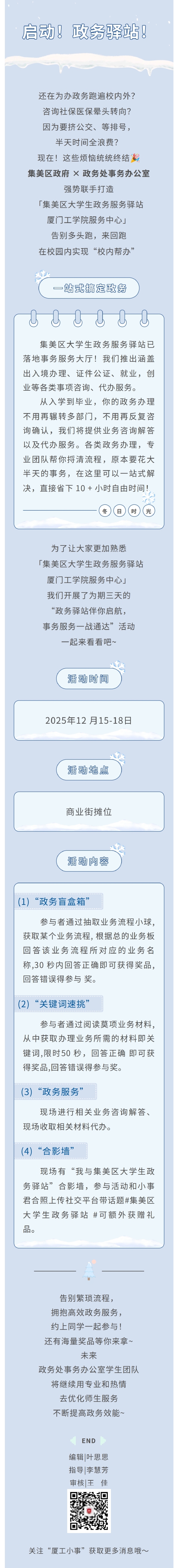 厦门工学院 - 政务处师生事务与法律服务部  地 址: 厦门市集美区孙坂南路1251号厦门工学院  邮 编: 361021  咨询电话: 0592-6667900