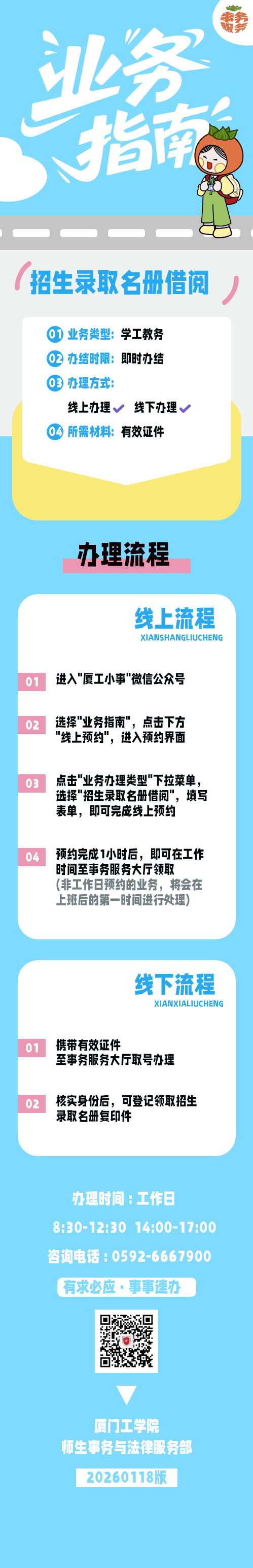 厦门工学院 - 政务处师生事务与法律服务部  地 址: 厦门市集美区孙坂南路1251号厦门工学院  邮 编: 361021  咨询电话: 0592-6667900