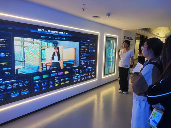为贯彻“立德树人,以文化人”的教育理念,持续拓展文化育人路径,我校于学期初为2025级新生正式开启校园实践课程《馆园》,在本学期9月至12月期间,持续为2025级融新学院94个班级,统筹组织47场新生参观活动。教育信息文化馆作为校园信息化建设的重要展示窗口,积极响应,全力做好现场设备支持工作,助力新生沉浸式感受智慧校园建设的成果与特色。