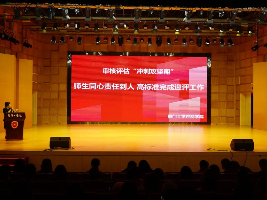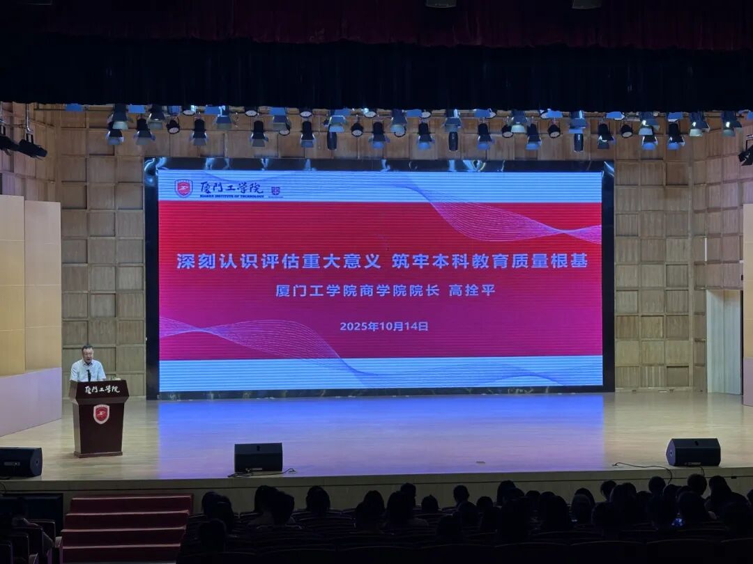 2025年10月14日下午,厦门工学院商学院召开本科教育教学审核评估冲刺工作部署会。商学院全体教职工及各年级各专业学生代表参加了此次会议。