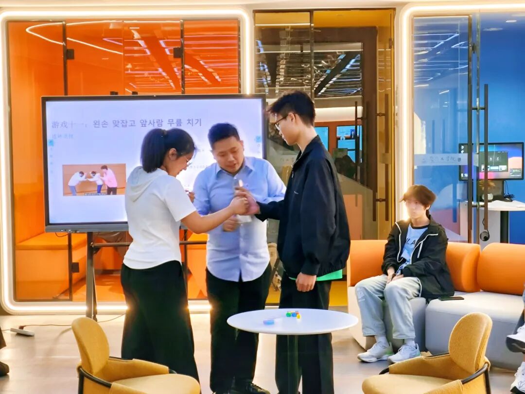 活动伊始,李善雄博士带领同学们走进充满韩式风情的传统破冰游戏环节,以生动有趣的方式开启文化探索之旅。“木槿花开了(무궁화 꽃이 피었습니다)”的欢快集结、“抠糖饼(달고나 뽑기)”的精准挑战、“捡石头游戏(공기놀이)”的默契配合,让现场氛围迅速升温。同学们在奔跑呼喊中把控节奏,在随机组队中收获惊喜,教室中回荡着青春的欢声笑语。这场沉浸式体验不仅打破了陌生感,更让大家在游戏互动中直观感受韩语表达的独特韵味,为后续的文化交流奠定了轻松愉悦的基础。