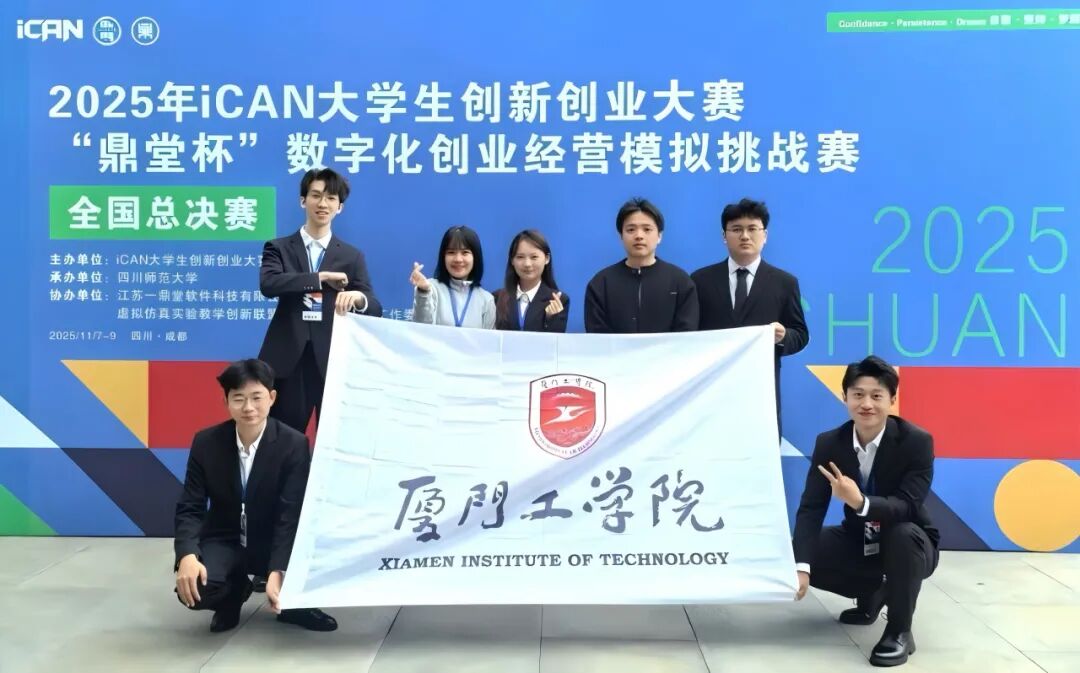 近日,2025iCAN大学生创新创业大赛“鼎堂杯”数字化创业经营模拟挑战赛全国总决赛在四川师范大学圆满收官。作为大学生创新创业领域的重要赛事,本次总决赛汇聚了全国众多高校的优秀团队,展开了一场关于人工智能赋能数字化企业经营的智慧较量。厦门工学院商学院学子凭借卓越的专业素养、创新的方案设计和默契的团队协作,在赛事中表现亮眼,一举斩获全国一等奖1项、全国二等奖1项,充分彰显了我校在数字化创业经营人才培养方面的突出成效。