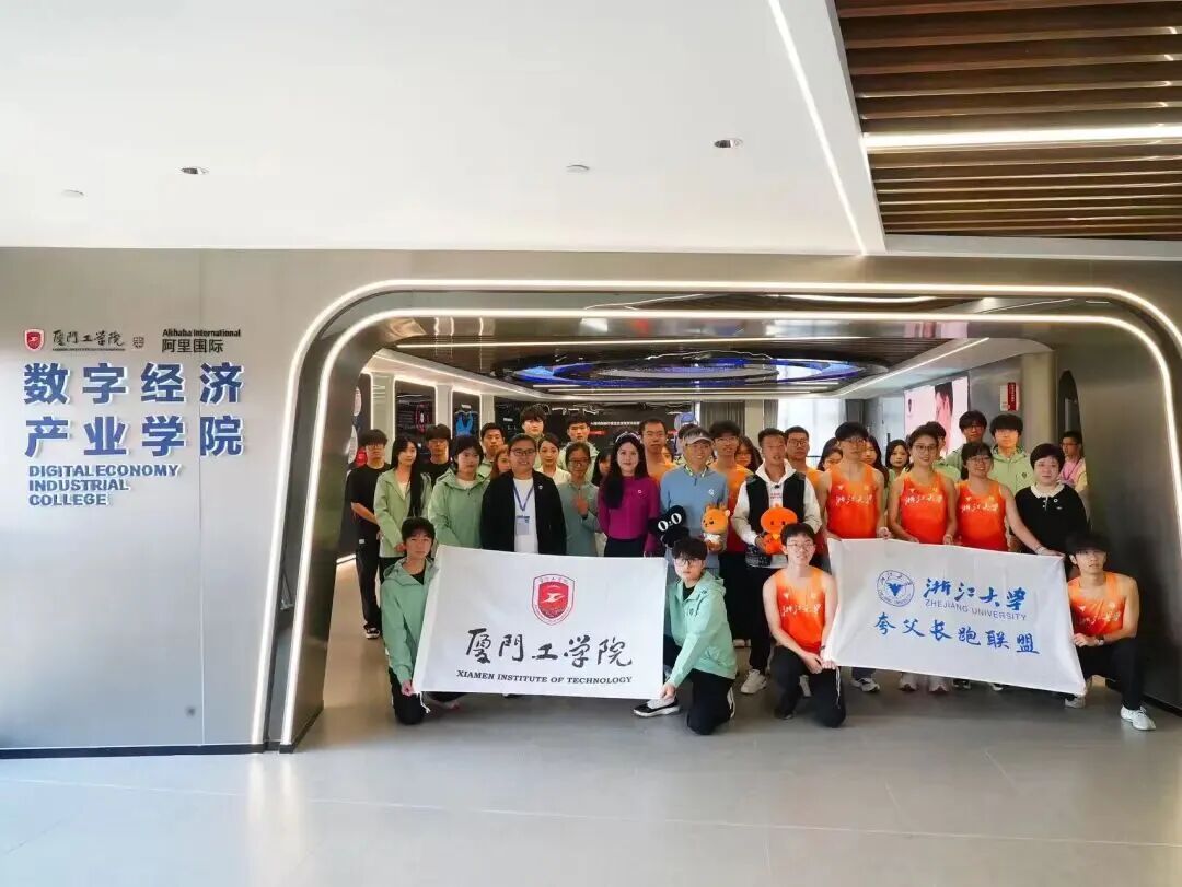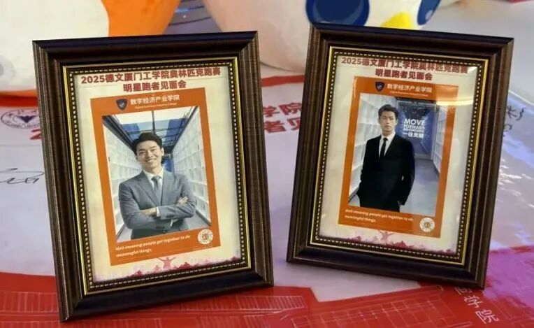 活动步入“科技+体育”创新体验环节。工作人员为大家介绍数字产业经济学院阿里巴巴板块,展现智慧体育与马拉松的融合探索。AI相机成为焦点,吴浩然与管油胜体验生成专属影像并签名留念,将科技之光与奔跑精神巧妙交融。