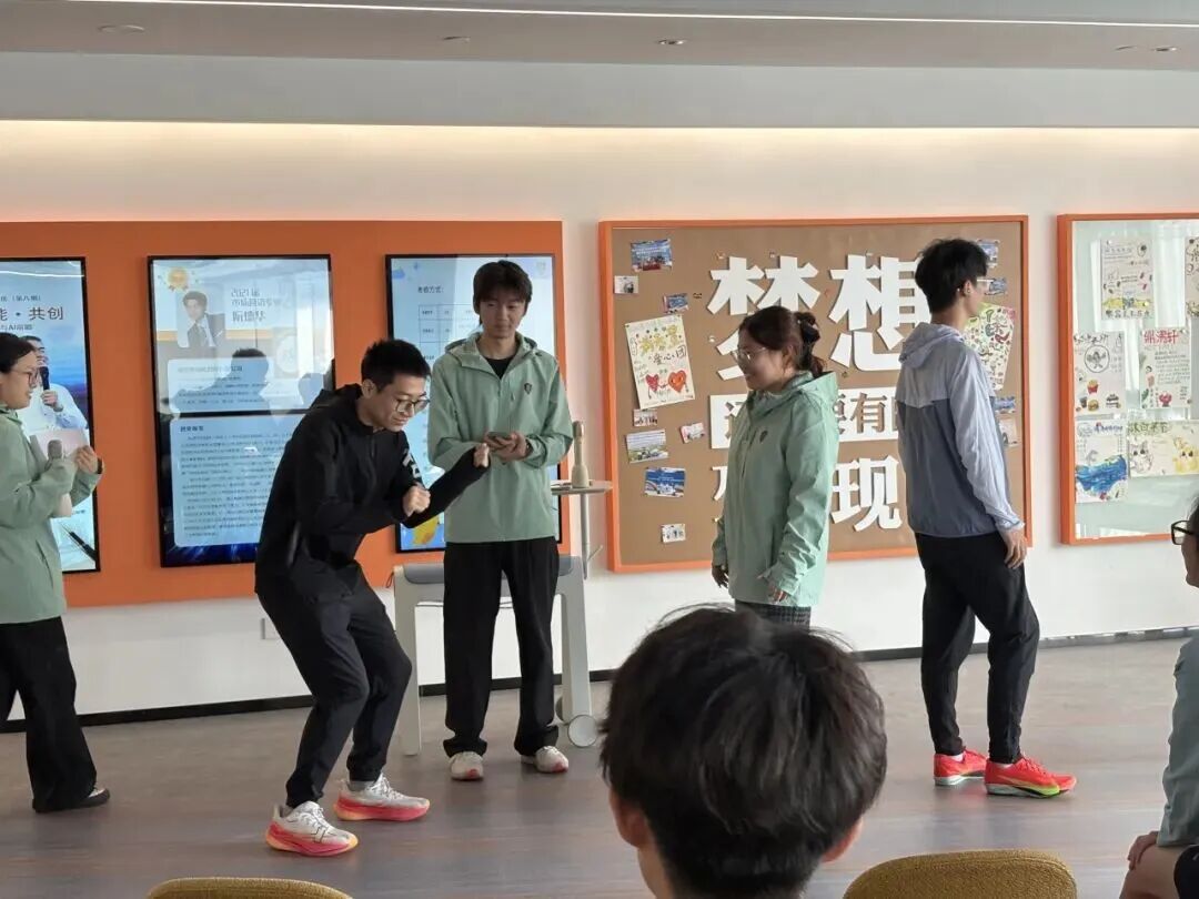 随后的跑团互动环节欢笑不断。“你划我猜”游戏中,商学院跑团成员默契配合,夸张比划与创意猜想引爆阵阵掌声,尽显跑团活力与情谊。尾声温馨而热烈。活动尾声全场共跳互动舞蹈,随节奏自由舞动,以跃动姿态与灿烂笑容定格这一刻,将现场氛围推向高潮。
