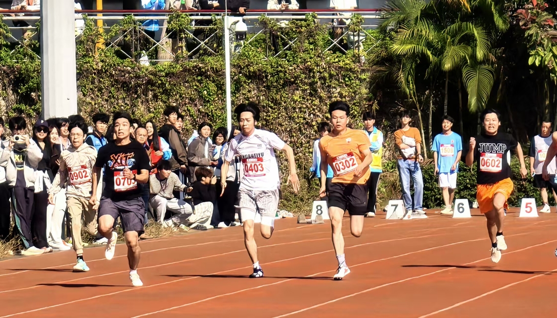 商学院教职工同样积极参与,在绑腿跑、夹球跑、乒乓球接力等趣味项目中团结协作、配合默契,在铅球、跳远等传统项目中亦展现出不俗实力,与学生一同构成赛场上亮丽的风景线。