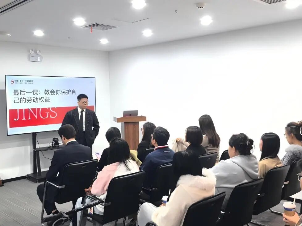 律所工作人员详细介绍了核心律师团队构成,系统阐释了团队深耕的专业领域,涵盖刑事辩护、商事服务(合同审查、纠纷调解)、民事案件(婚姻家庭、劳动争议)等多个板块;同时全面解读了京师律所的全国化与国际化战略布局——总部立足北京,海内外分支机构星罗棋布,厦门分所凭借卓越服务积淀下良好行业口碑。工作人员还分享了律所稳健运营模式与良好盈利态势,助力学生全方位洞悉现代化法律机构的运作逻辑与发展脉络。