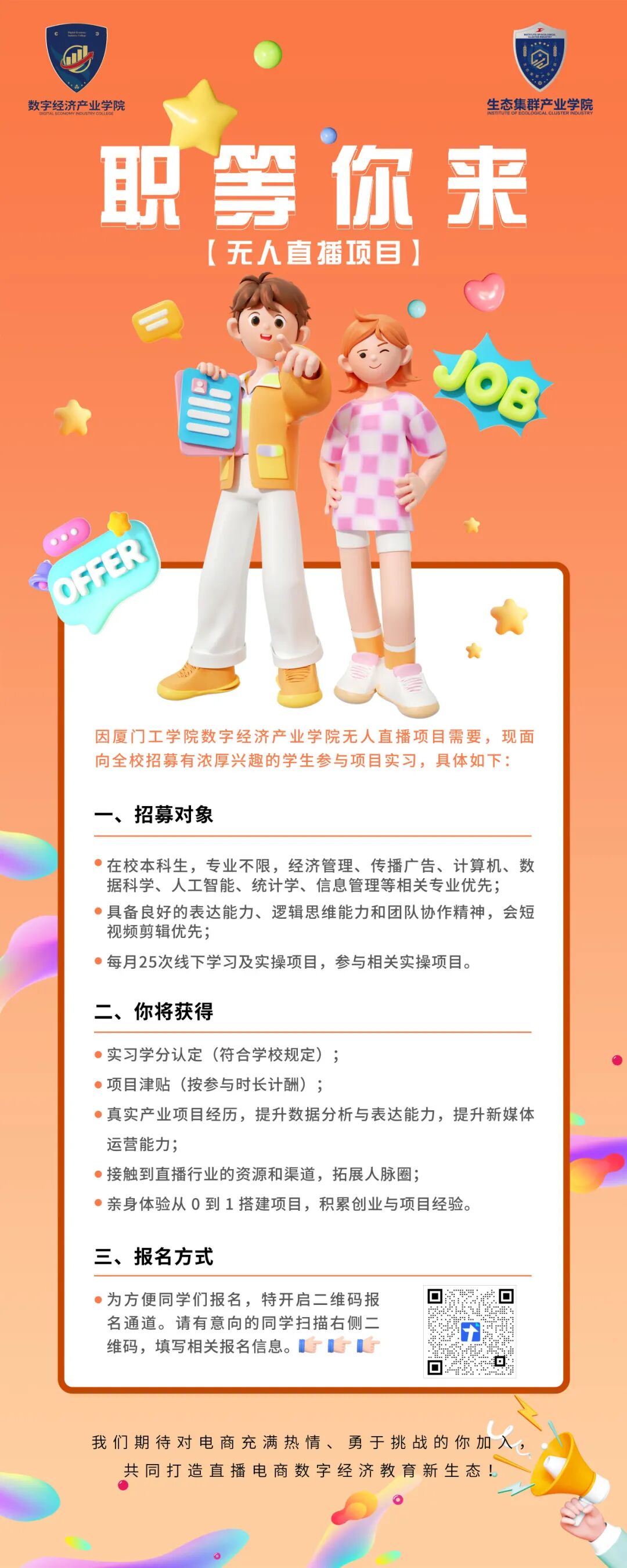【实习招募】厦门工学院数字经济产业学院无人直播项目实习招募