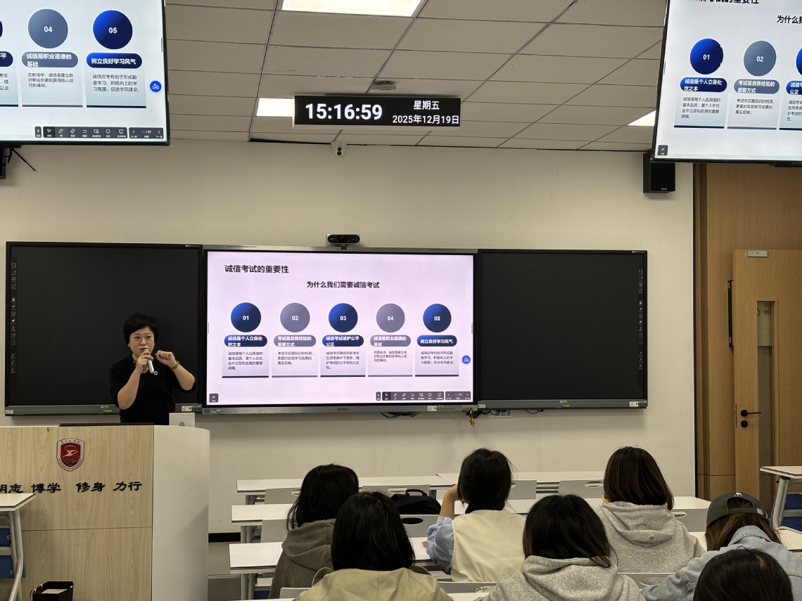 各班级在“诚信考试”主题班会上积极运用案例警示、情景模拟、榜样分享及庄严承诺等多种方式,深入剖析诚信对于个人品格、学业发展及未来商科职业素养的核心价值,阐明“一次作弊,终生遗憾”的深刻道理。同时,引导学生深刻理解诚信是商业社会的基石,考场上的自律是对未来职业中恪守契约精神、商业伦理的预先实践。